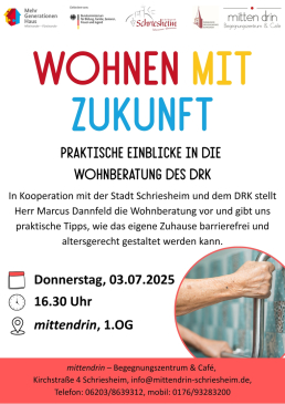 Über dies und vieles mehr wird uns Herr Marcus Dannfeld von der Wohnberatung des DRK informieren und gibt uns dabei praktische Tipps, wie das Zuhause passend gestaltet werden kann.