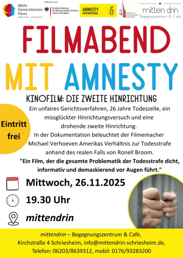 Vor Ort und in der Region hat die Amnestygruppe Ladenburg |Schriesheim eine Reihe von Veranstaltungen und Aktionen geplant, bei der Sie sich mit Ihrer Unterschrift bei den Appellbriefen beteiligen können.