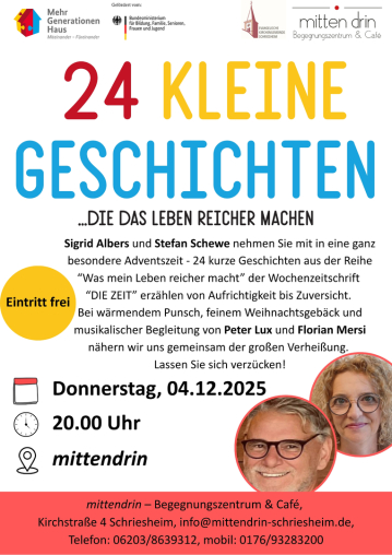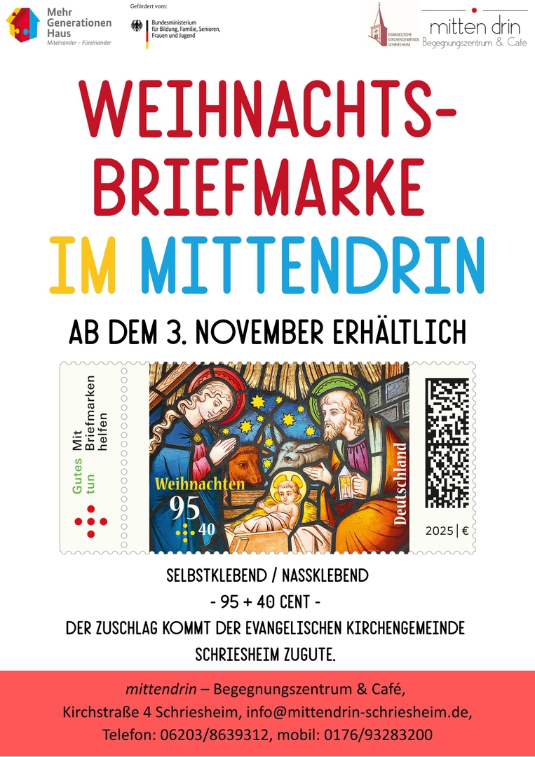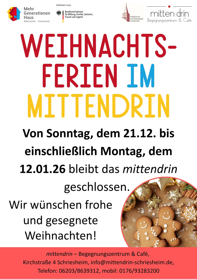 Wir wünschen allen ein gesegnetes Weihnachtsfest und freuen uns auf gute Begegnungen bei uns im mittendrin ab Dienstag, dem 14.01.2025.