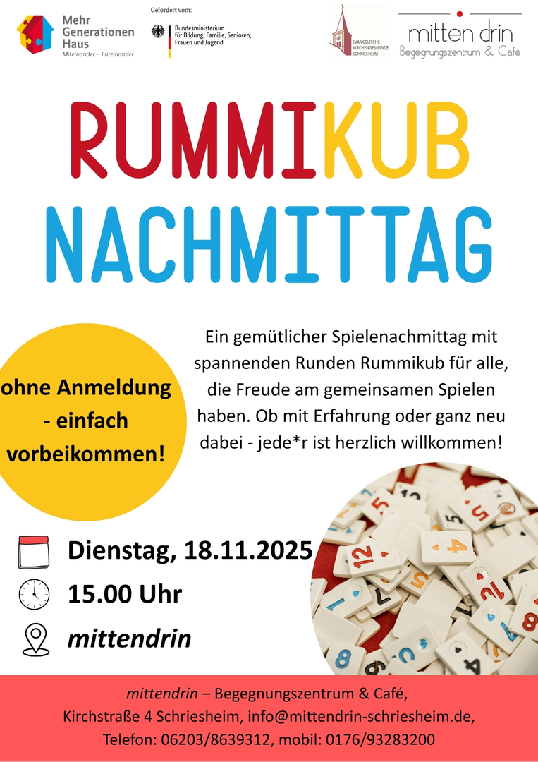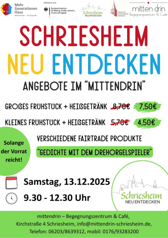in Schriesheim im Begegnungszentrum & Cafe "Mittendrin", im Rathaus