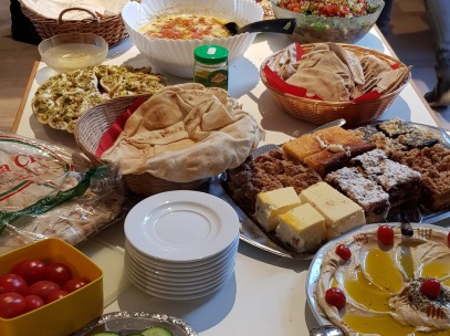 Gemeinsam frühstücken, plaudern und dabei ein Zeichen für das gute Zusammenleben in Schriesheim setzen, war Ziel an diesem Vormittag. Gekommen waren ehrenamtliche BetreuerInnen und die neuen MitbürgerInnen. Jede/jeder BesucherIn hatte dazu was aus ihrer / seiner Kultur mitgebracht.