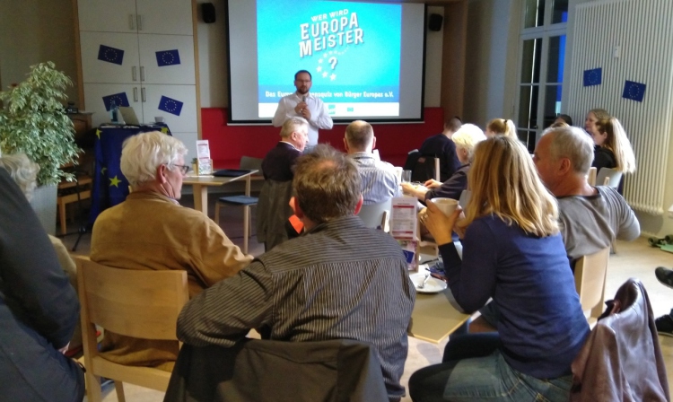 Herr Krakowiak von der Initiative „Bürger Europas e.V.“ war eigens aus Berlin angereist, um als Quizmaster mit den rund 40 Mitspielern aus Schriesheim einen unterhaltsamen Nachmittag zu erleben.