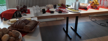 Ein Lied von Adel Tawil begleitete die 80 Gäste an diesem Vormittag im „mittendrin“. An einem reichhaltigen Frühstücksbuffet konnte man sich sein eigenes Frühstück zusammenstellen, Kaffee und Saft inklusive. Da gab es verschiedene Brötchen, Eier, Schinken, Schafskäsecreme, Lachsaufstrich, verschiedenste Marmeladen, Fruchtmüsli und vieles mehr.