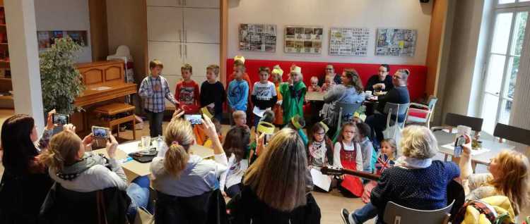 Am Freitag, dem 5. April um 10.30 Uhr war das "mittendrin" innerhalb weniger Minuten voll besetzt. Der Grund dafür waren die Schülerinnen und Schüler der Strahlenberger Grundschule Schriesheim, die begleitet von ihren Lehrerinnen Frau Riedinger, Frau Berger und Frau Sindlinger Gedichte vortrugen und gemeinsam mit den Gästen Lieder sangen.