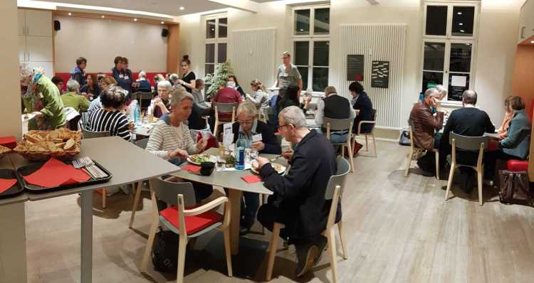 Dazu hörten wir ein sehr hilfreiches und praxisorientiertes Referat der Studienleiterin im Zentrum für Seelsorge Dr. Kreitzscheck und vertieften das Gehörte auch gleich in praktischen Übungen. Am Nachmittag waren alle 70 Teilnehmer in Schriesheim zu Gast. In Workshops ging es um Finanzen, Netzwerken, Fundraising, Organisation und die Herstellung von allerlei Kulinarischem, das dann auch Teil des abendlichen Buffets wurde.