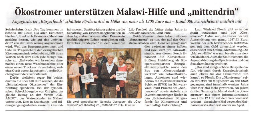 Zeitungsartikel in der RNZ vom 05.07.2019