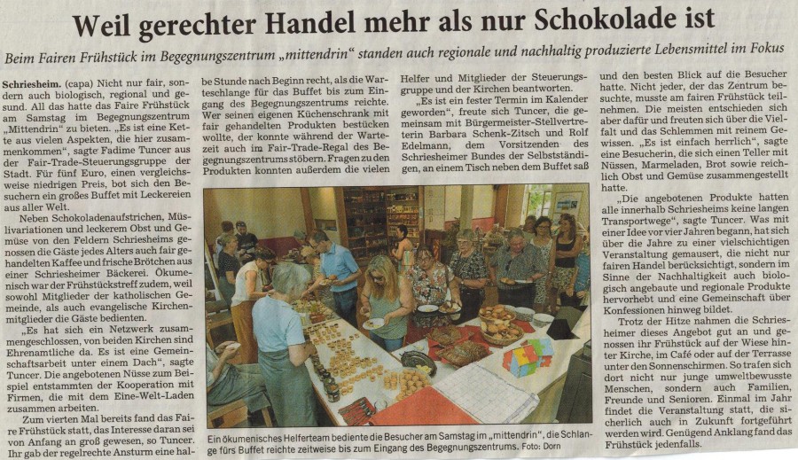 Das "Faire Frühstück" fand bereits zum vierten Mal in Kooperation mit der Fairtradetown Schriesheim und dem Team des Weltladen statt.