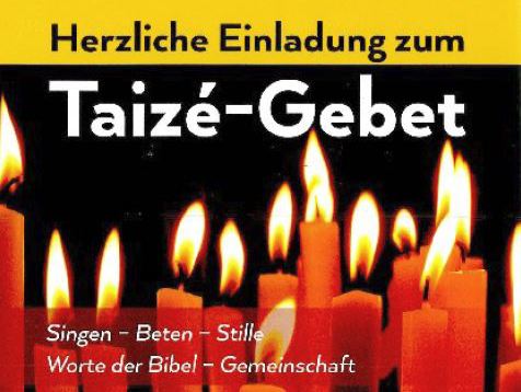 Herzliche Einladung zum Taizé-Gebet, das ca. 6x im Jahr um 19 Uhr an einem Sonntagabend im Winterhalbjahr stattfindet.